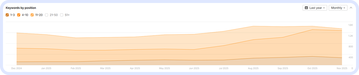 - Organic traffic: 750 → 11,796 (+1469%)